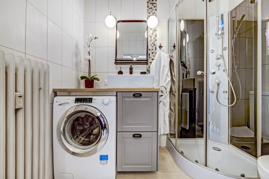 - Salle de douche séparée avec vasque et wc et machine à laver séchante